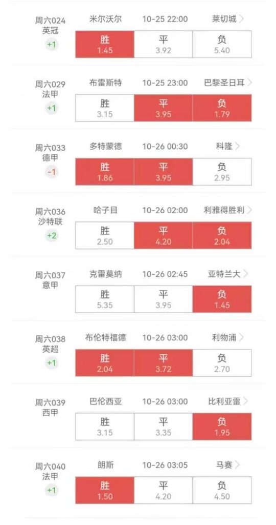 精选二串,三串,八串。 总编G 默认分类 2025年10月25日 福图纳锡塔德 Vs 格罗宁根 全场大2.5 海牙 VS 邓伯什 全场大3.5 利雅得沙巴布 VS 达马克 全场大2.75 总编G 暂无介绍.... TA的主页 上一篇 日职韩K又来了,日职韩K冲击连红!!! 下一篇 两场竞选赛事比分方向! 延伸阅读: 默认分类 主任精选四串两个 高评 总编G 2025年11月4日 默认分类 精选两场 高评 总编G 2025年11月4日 默认分类 精选两场 高平 总编G 2025年11月4日 默认分类 主任精选二串四串! 高评 总编G 2025年11月3日 默认分类 精选两场赛事 高评 总编G 2025年11月3日